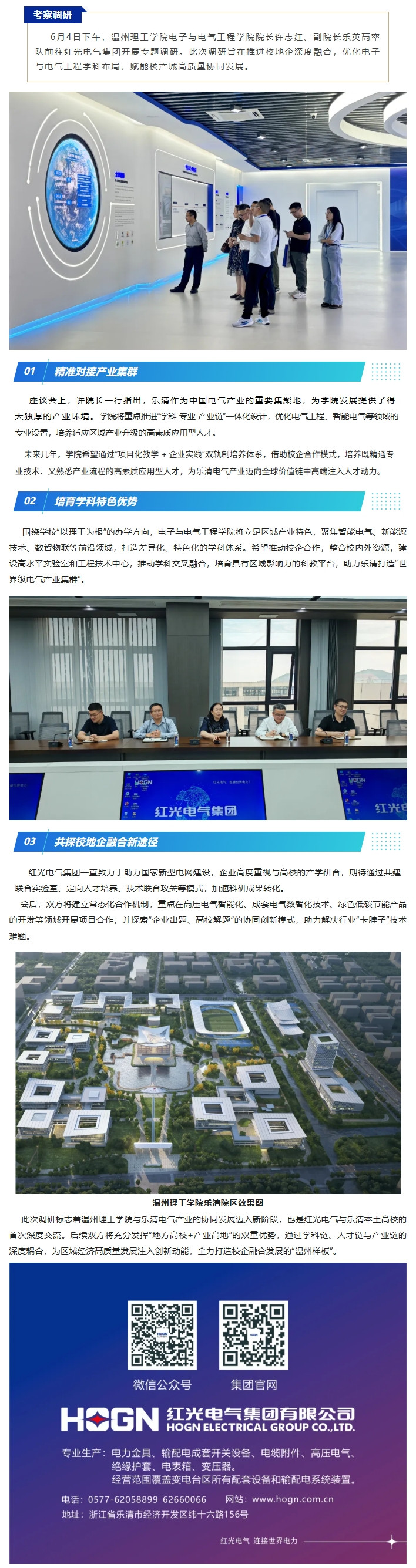 2025年6月 温州理工学院电子与电气工程学院院长一行赴红光电气集团考察调研